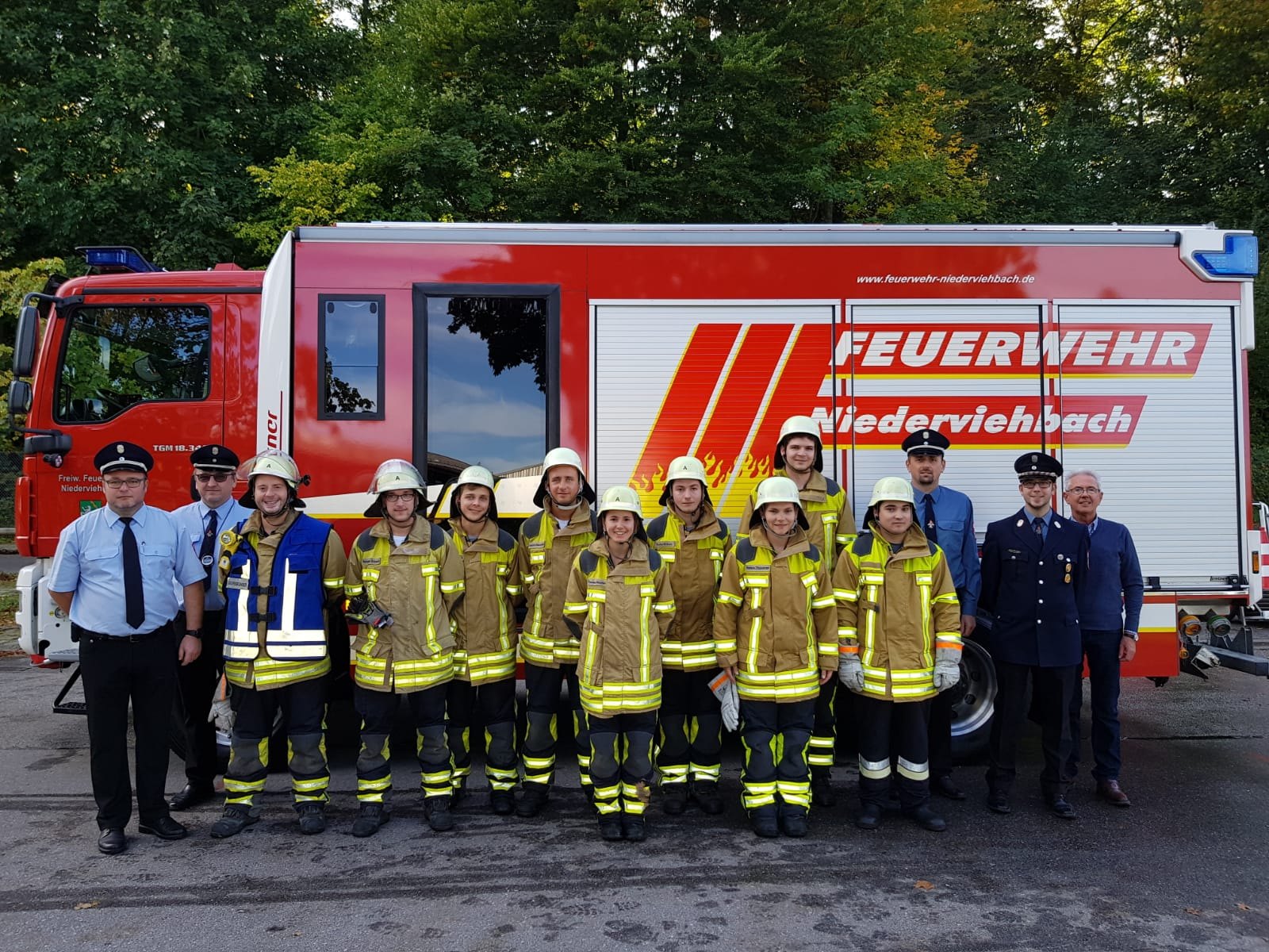 Am vergangenen Samstag legten 3 Gruppen der Feuerwehr Niederviehbach erfolgreich die Leistungsprüfung “Gruppe im Löscheinsatz” ab.  Ziel der Leistungsprüfung ist es den Teilnehmern eine gute Ausbildung und eine Grundstruktur für den Einsatz im Brandfall zu vermitteln. Die 17 Prüflinge übten mit ihren Gruppenführern Matthias Ehrenberger und Tobias Schmiedek schon seit einigen Wochen fleißig den Aufbau und Ablauf im Löscheinsatz sowie Knoten und Stiche. Unter den 17 Teilnehmerinnen und Teilnehmer konnte neunmal die Stufe 1 mit Bronze, zweimal Stufe 2 mit Silber, einmal Stufe 3 mit Gold, zweimal Stufe 4 mit Gold-Blau, zweimal Stufe 5 mit Gold-Grün und einmal die letzte Stufe mit Gold-Rot verliehen werden. Die Prüfer Hans Klostermeier (Kommandant FF Puchhausen) und Sebastian Wimmer (FF Frontenhausen) sowie Kreisbrandmeister Jürgen Schachtner hoben besonders den Zusammenhalt der Gruppe in der Stresssituation hervor, sowie die umsichtige Arbeitsweise beider Maschinisten. Bei der Verleihung der Abzeichen im Feuerwehr Haus lobte der erste Kommandant Stephan Neumeier die Leistung der Prüflinge und bedankte sich bei Bürgermeister Johannes Birkner, der nicht nur zur Verleihung anwesend war, sondern sich den ganzen Nachmittag Zeit nahm um sich die Prüfung anzusehen. Ein großer Dank ging auch an die drei Prüfer und den Kammeraden die bei der Ausbildung die Gruppenführer unterstützen. Abschließend sprach auch der Bürgermeister noch ein paar Worte. Er bedankte sich bei den Feuerwehrfrauen und -männer für den 24-Stunden Standby Einsatz, denn er als Bürgermeister ist in der Gemeinde Niederviehbach für den Brandschutz zuständig und was würden Feuerwehrauto und Geräte helfen, wenn dahinter keine Menschen stehen, die diese Geräte jederzeit sinnvoll einsetzen können? Nach der Verleihung wurde der Erfolg mit einer Brotzeit und gemütlichem Beisammensein im Feuerwehrhaus gefeiert.