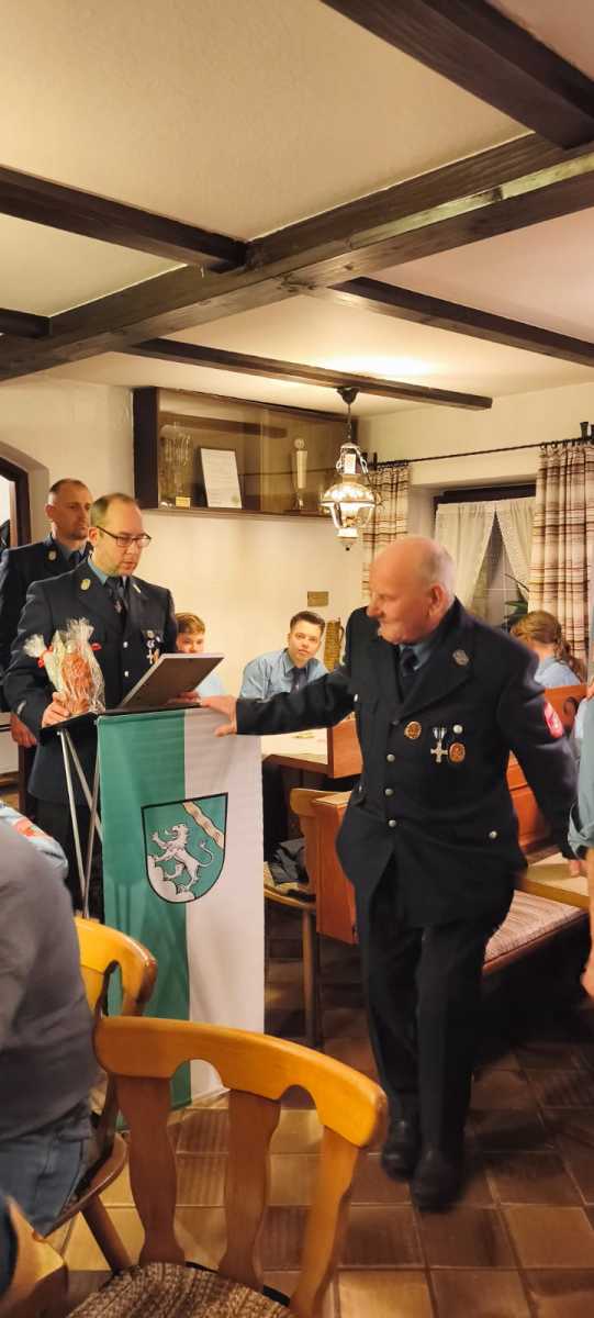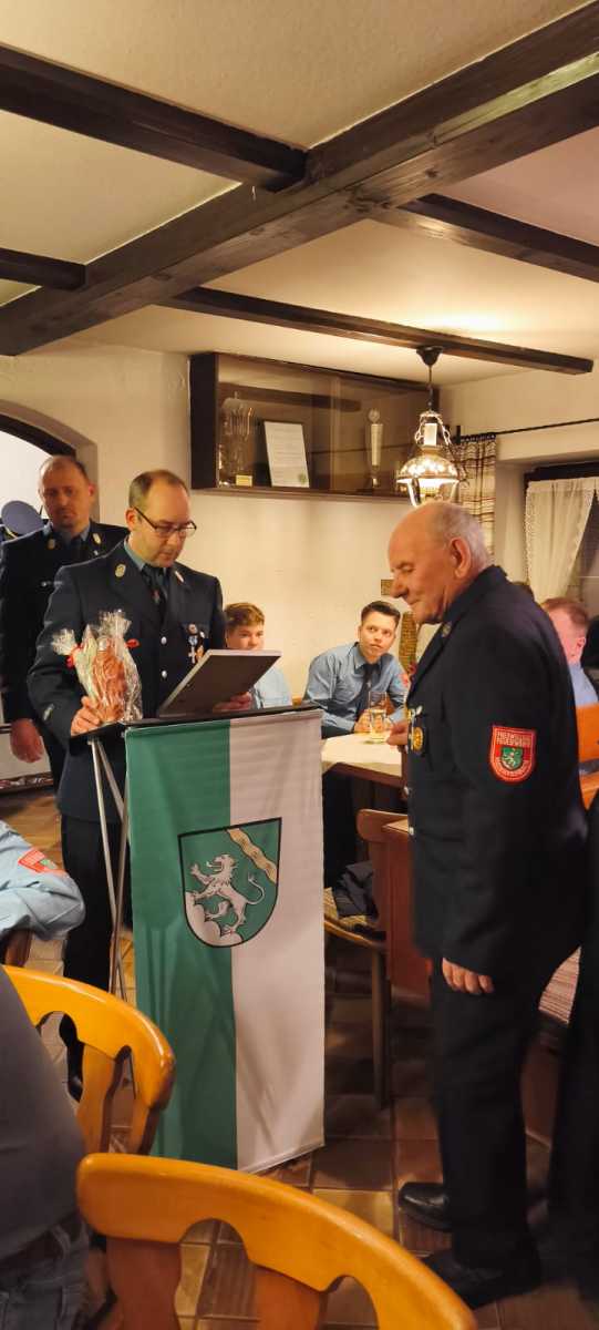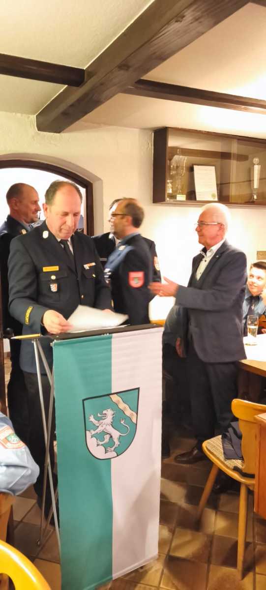 1. Vorstand Andreas Birkner begrüßte zu Beginn alle anwesenden Personen und erläuterte die Tagesordnungspunkte. Nach dem Totengedenken präsentierte Birkner und 1. Kommandant Stephan Neumeier einen Überblick über das vergangene Jahr, ehe Kreisbrandrat Max Schraufnagl das Ehrenzeichen für 25 Jahre aktiven Dienst an Andreas Birkner, Martin Djerd und Richard Paukner verlieh, gefolgt von allgemeinen Worten seinerseits. Birkner würdigte danach für 60 Jahre Feuerwehrdienst Josef Brandl. Anschließend wurden die Berichte des 1. Vorstands und 1. Kommandanten durch den Atemschutzgerätewart und Jugendwart um wichtige Informationen ergänzt. Nun gab Kassier Christian Ganslmeier einen Überblick über die Ausgaben, Einnahmen und den Kontostand des vergangenen Jahres. Zum Abschluss informierte Kreisbrandmeister Jürgen Schachtner noch über relevante Dinge aus seinen Abschnitt II.