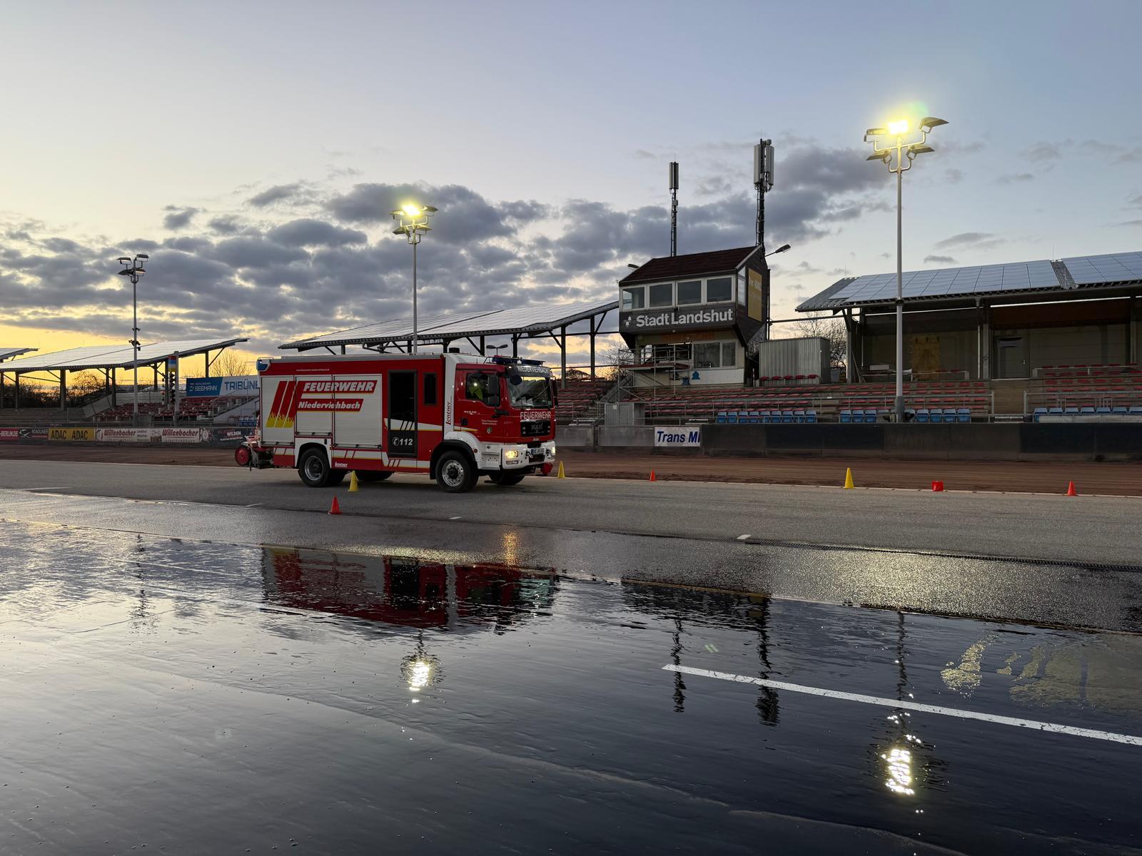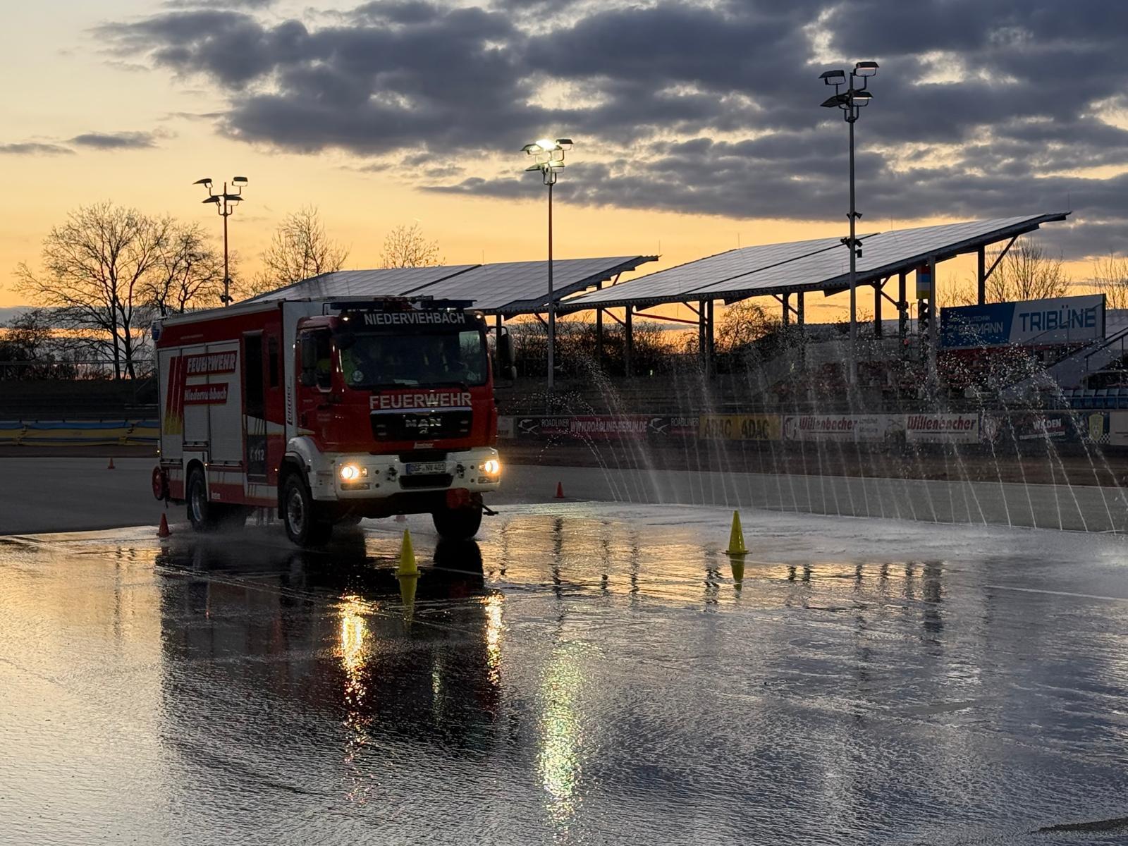Am 27.03. absolvierten zwei unserer Maschinisten ein Fahrsicherheitstraining für das Hilfeleistungslöschfahrzeug (HLF) auf dem Gelände der Ellermühle. In sicherer Umgebung konnten verschiedene Fahrmanöver geübt werden, darunter Gefahrenbremsungen sowie das Ausweichen vor Hindernissen auf trockener und nasser Fahrbahn. Solche Trainings sind essenziell, um das Fahrzeug besser kennenzulernen und künftig auf allen Fahrten sicher und routiniert agieren zu können.