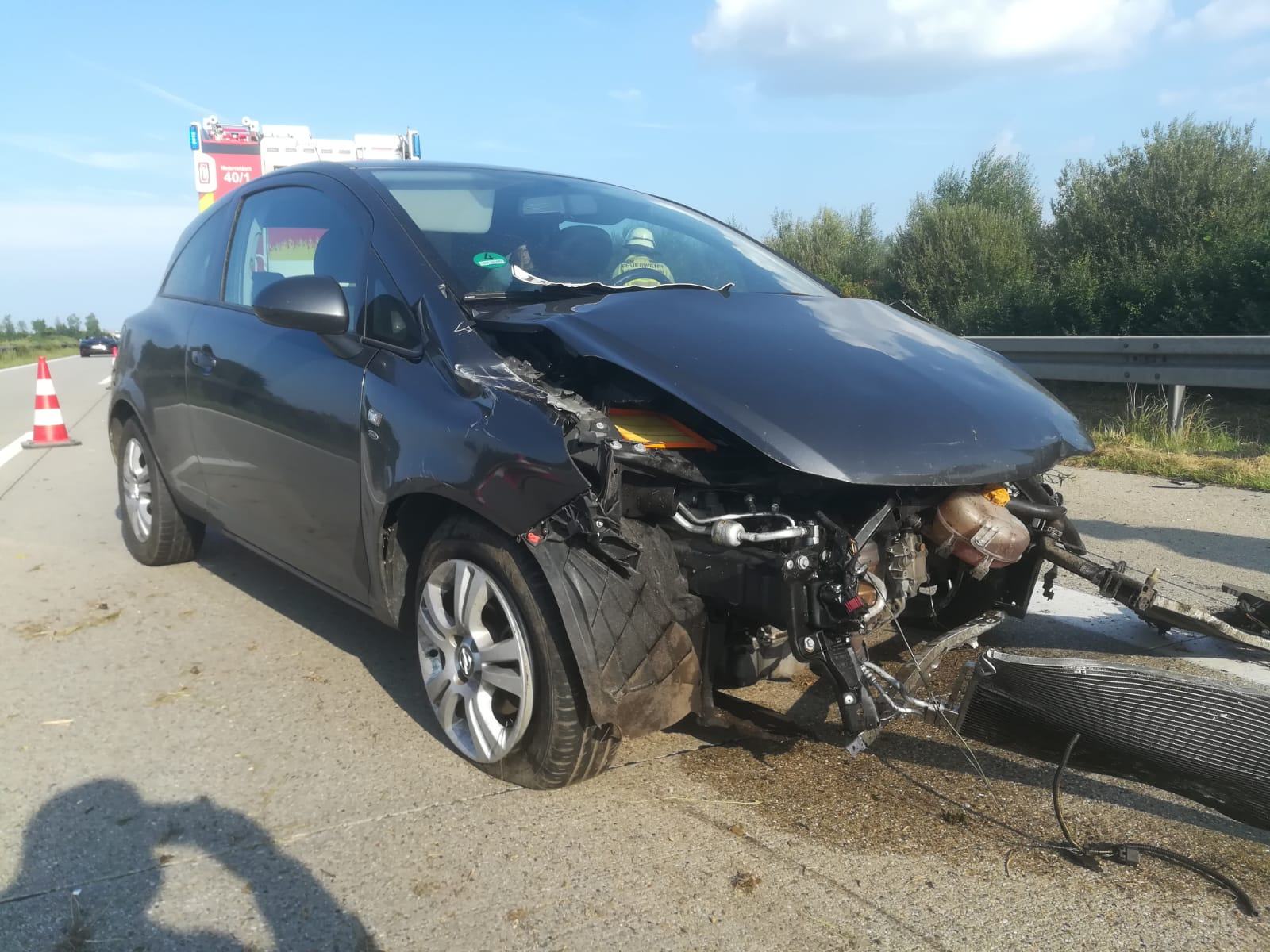 Ein PKW fuhr in die Mittelleitplanke und kam anschließend am rechten Fahrstreifen zum stehen. Die Person wurde leicht verletzt mit dem RTW ins KKH abtransportiert. Es wurde unsrerseits die Unfallstelle abgesichert, die Fahrzeugbatterie abgeklemmt, auslaufende Betriebsstoffe gebunden und die Fahrbahn gereinigt. Auch die FF Wörth 27/1 mit VSA wurde alarmiert.