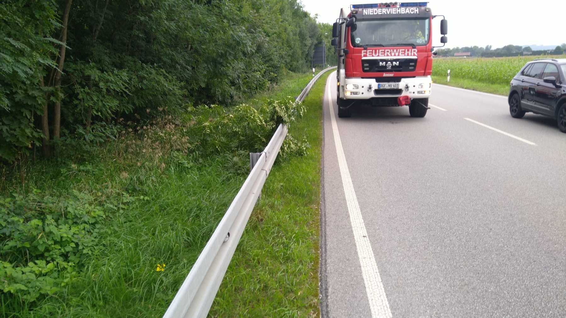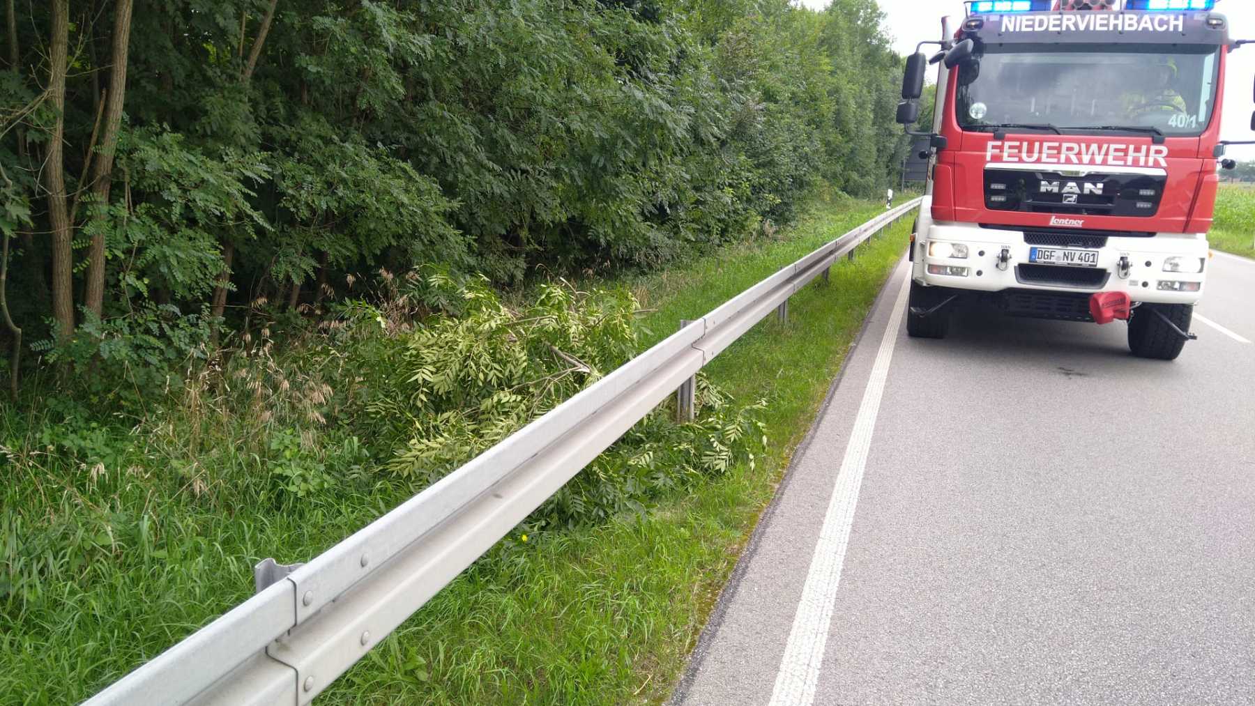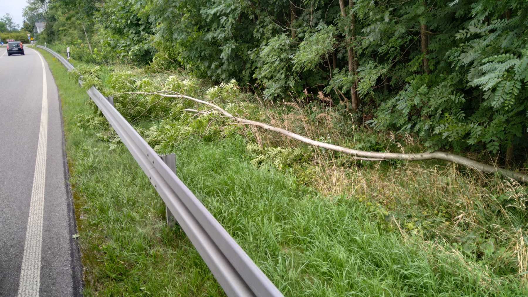 Bei Ankunft wurde festgestellt, dass ein kleinerer Baum auf der Leitplanke liegt. Dieser wurde von Hand entfernt.