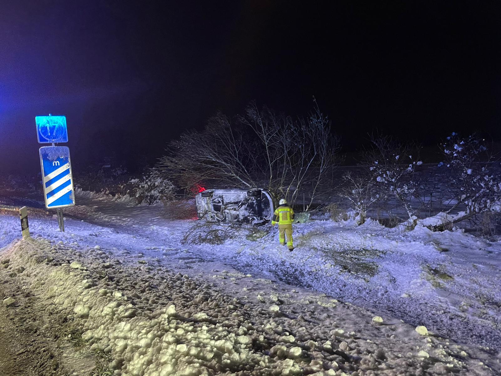 Das Fahrzeug kam nach rechts von der Fahrbahn ab hat sich überschlagen und blieb entgegen der Fahrtrichtung auf der Fahrerseite an einem kleinen Baum liegen. Beim Eintreffen war keine Person mehr im Fahrzeug. Der Fahrer wurde durch Ersthelfer und Rettungsdienst betreut. Wir erstellten eine Verkehrsabsicherung zusammen mit den Wehren aus Höfen und Dingolfing. Das Fahrzeug wurde noch auf die Reifen gestellt und die Einsatzstelle an Autobahnmeisterei und Polizei übergeben.