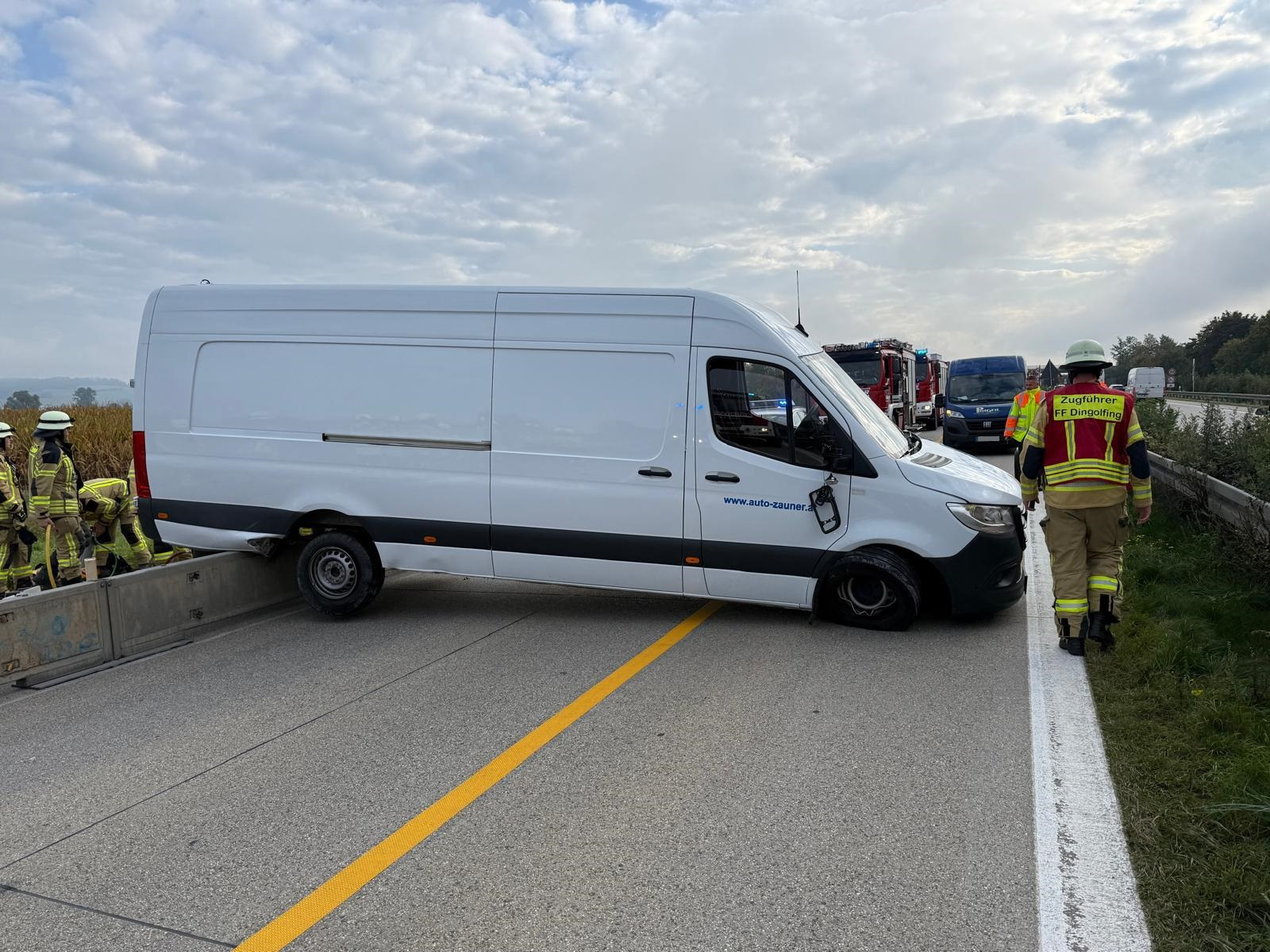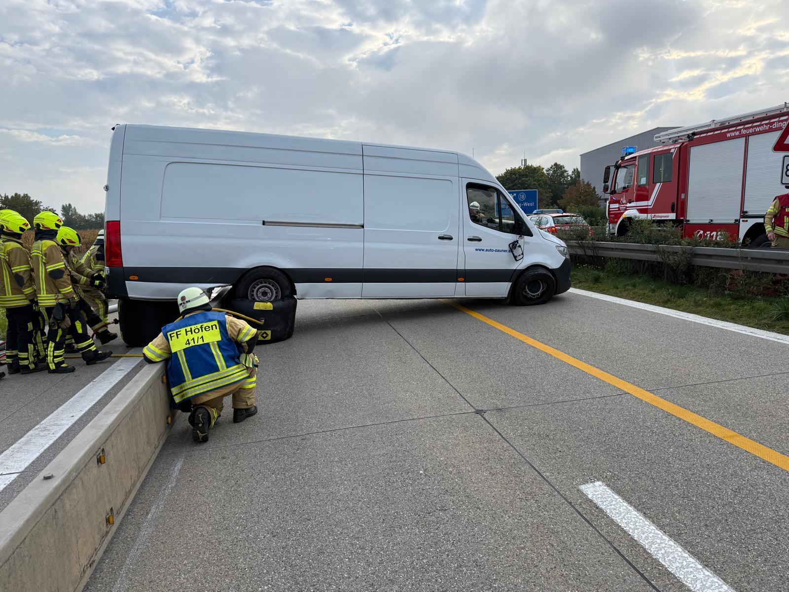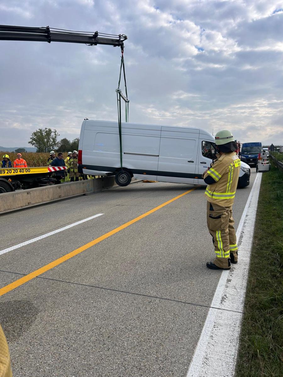 Am 29. September wurden wir zu einer technischen Hilfeleistung im Bereich der aktuellen Baustelle kurz nach der Auffahrt Dingolfing-West bei Kilometer 87 alarmiert. Ein Transporter war mit dem Heck auf einer Baustellenleitplanke aufgesetzt und blockierte dabei beide Fahrbahnstreifen der A92 in Fahrtrichtung München.